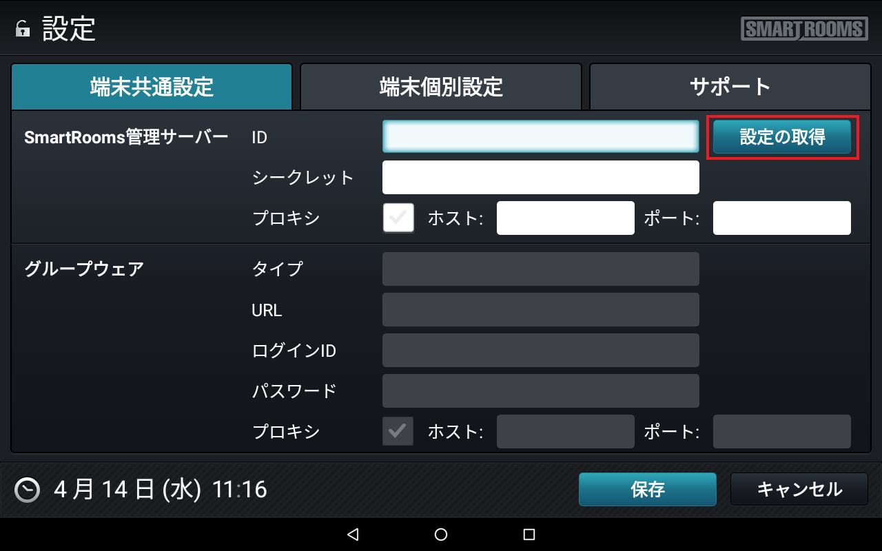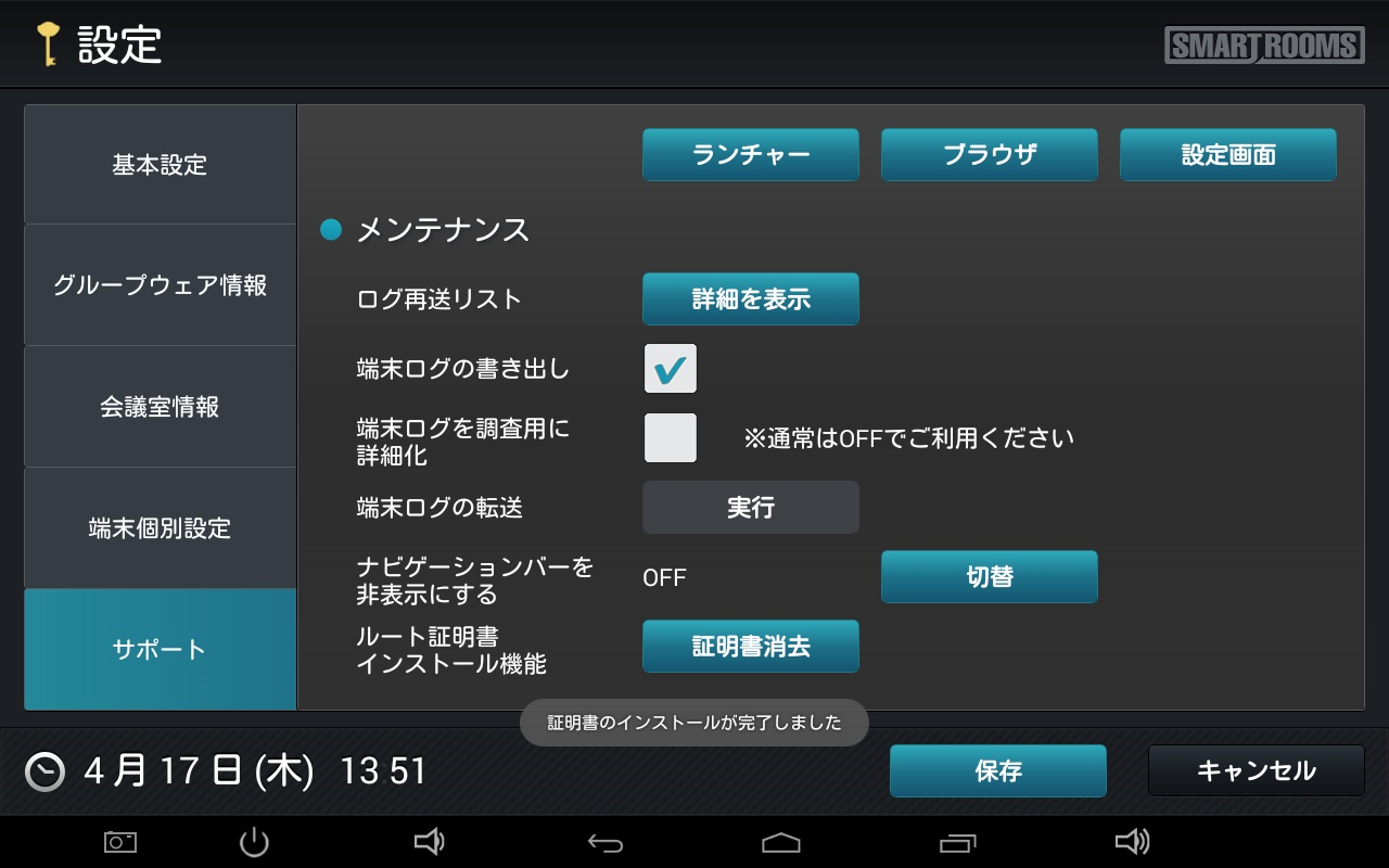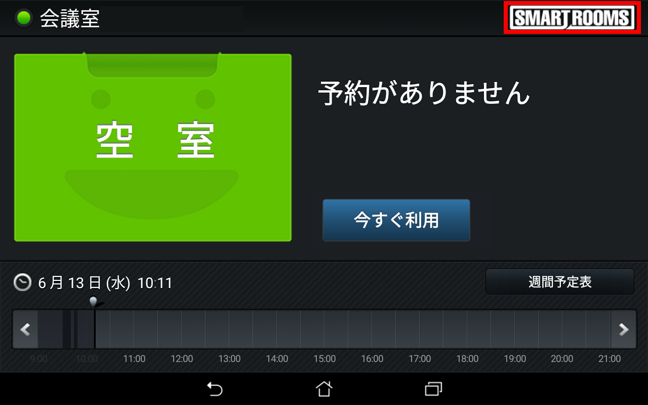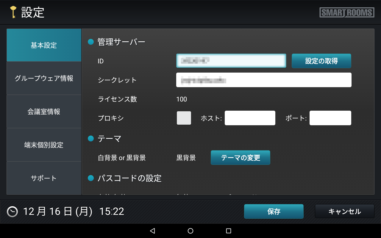 → メイン画面が表示され、端末がSmartRooms管理サーバーに登録されます。