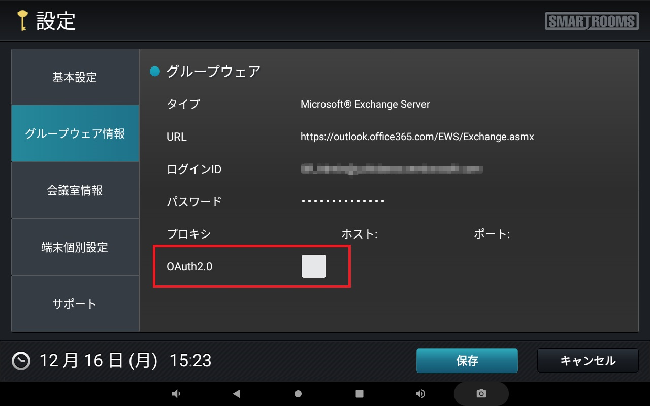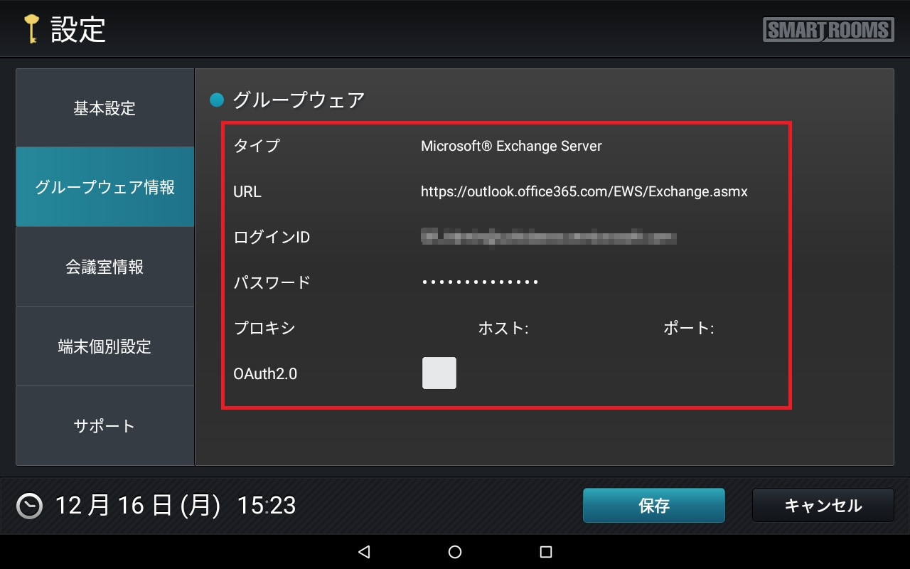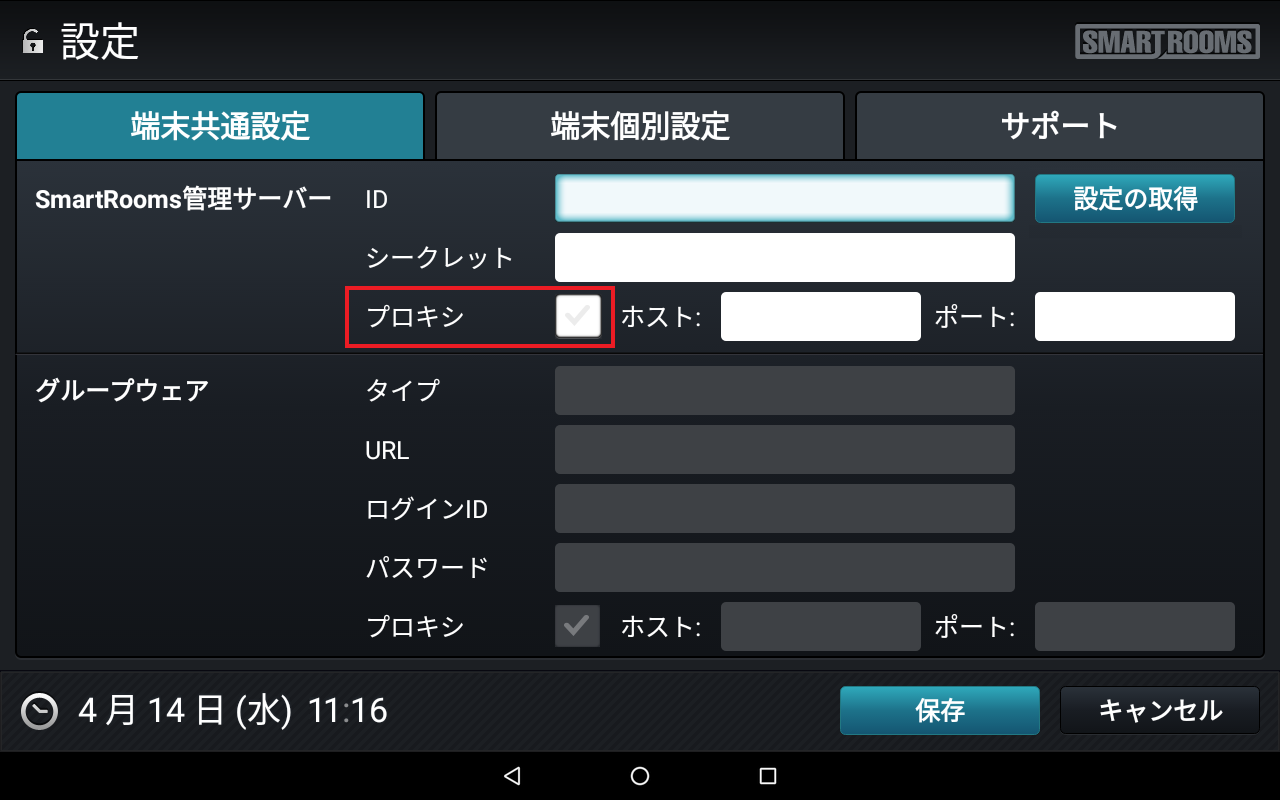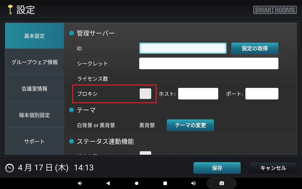 → メイン画面が表示され、端末がSmartRooms管理サーバーに登録されます。