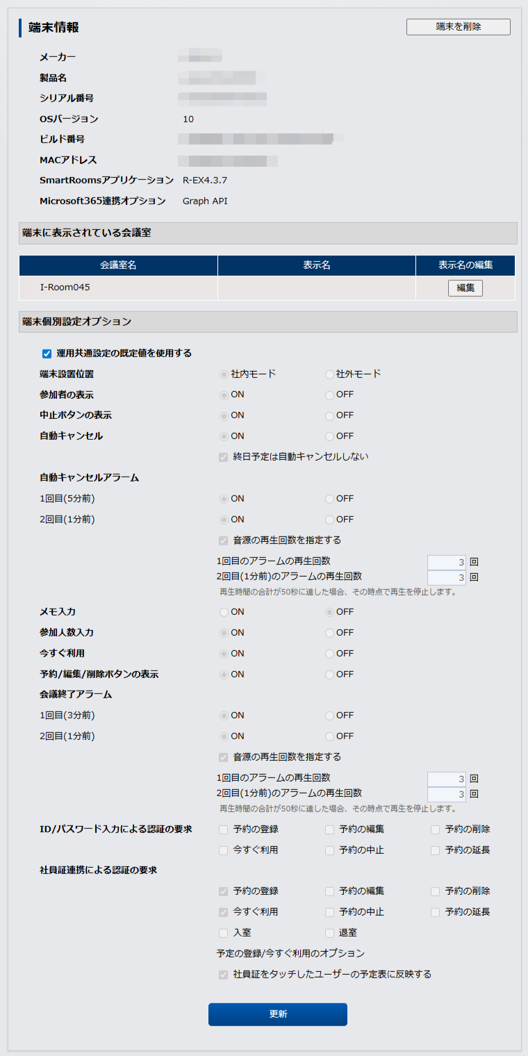 運用共通設定で設定された既定値とは別に、その端末のみの設定ができます。詳細は「 端末個別設定オプションの更新 」を参照してください。