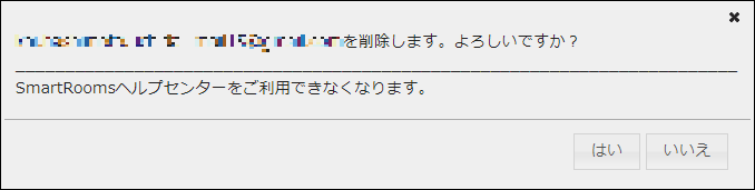 削除された管理者は、管理者用ウェブサイトにログインできなくなります。削除された管理者のメールアドレス宛に、「法人管理ユーザーの削除通知」というメールが配信されます。→ ヘルプデスク利用にチェックをつけている場合は「SmartRoomsヘルプセンターの利用停止通知」というメールも配信されます。
