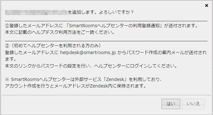 SmartRoomsヘルプセンターの利用登録通知