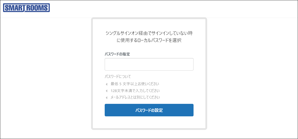 ログイン後は「 パスワード変更 」を参照し、速やかにパスワードを変更してください。ヘルプデスク利用にチェックを付けた場合は、SmartRoomsヘルプセンターアカウント有効化メールの本文のURLをクリックします。