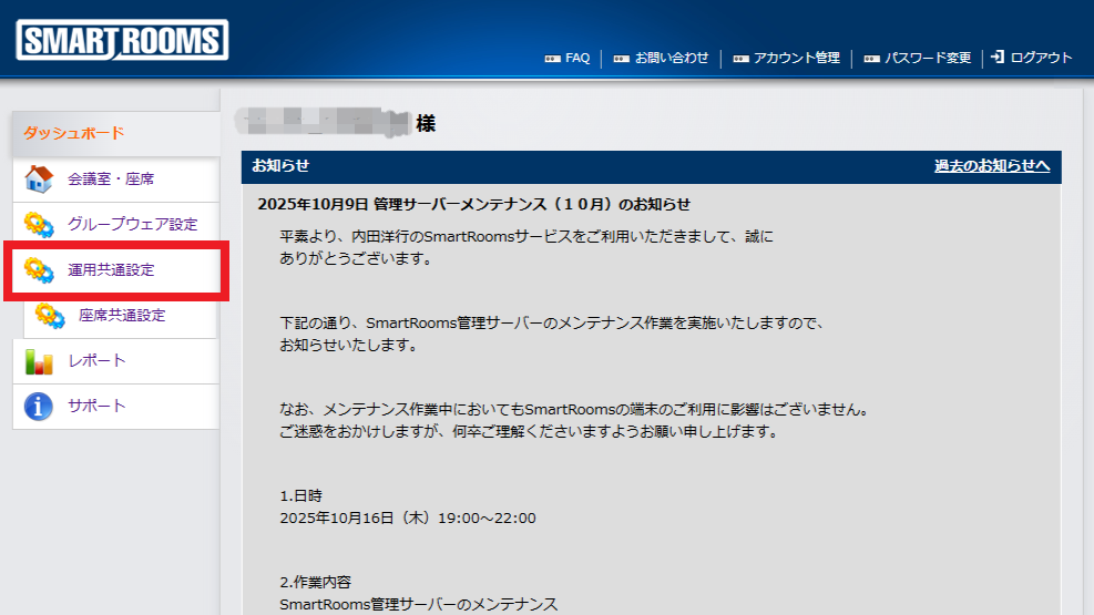 - 「運用共通設定の変更に成功しました。」と表示されます。