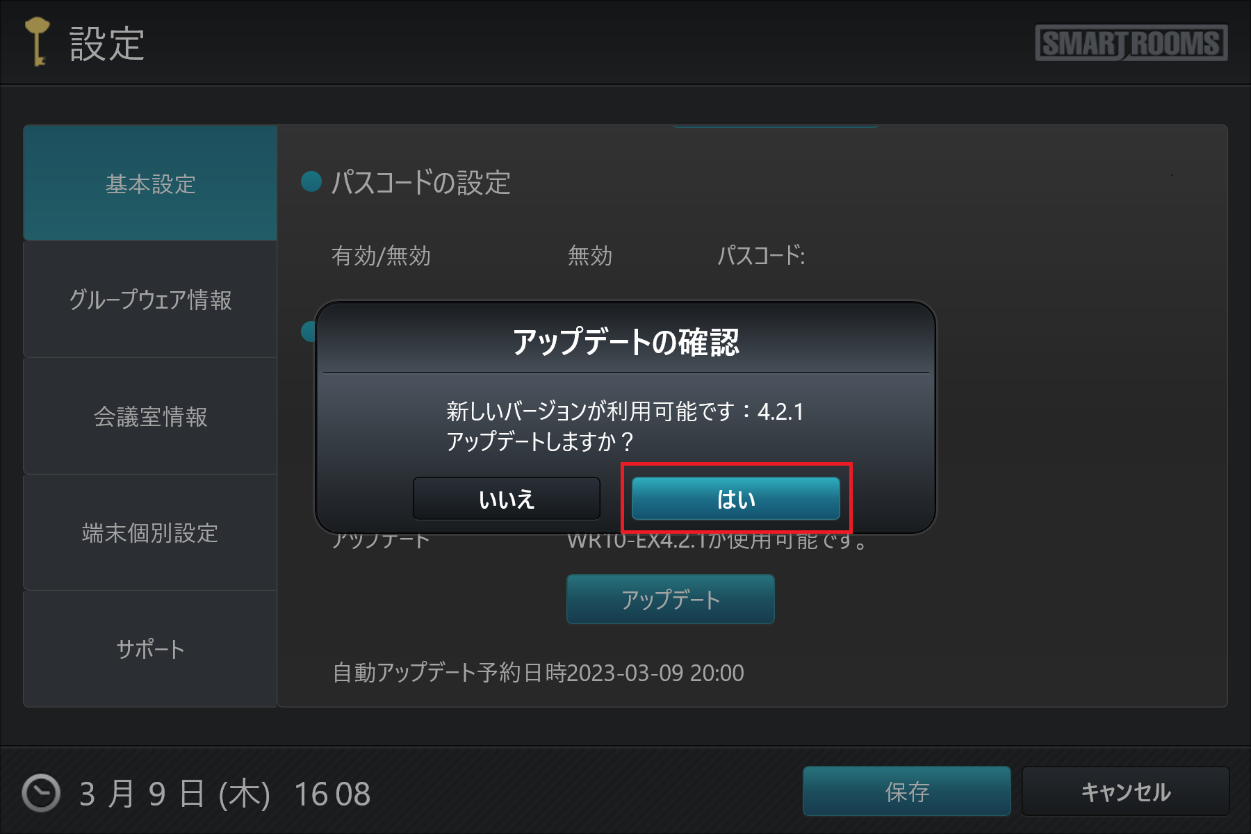 「バージョンを更新」の確認ダイアログが出るので、「はい」をタップします。