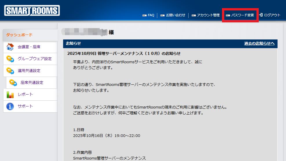 変更の手順については、「 パスワード変更 」を参照してください。