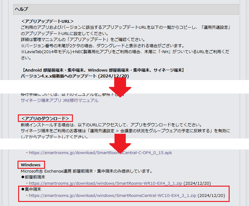 事前にバージョン4.1.1以前の端末アプリをアンインストールした場合は、インストール後の環境設定実施後にExchange連携版 管理マニュアル「 法人への紐づけ 」と「 グループウェアおよび会議室との接続 」および「 端末上でできる端末個別設定 」を行ってください。