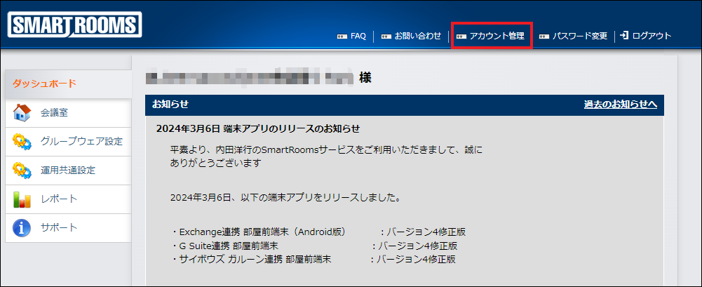 画面上部の 「 アカウント管理 」をクリックします。