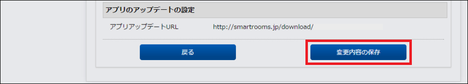 最新のSmartRoomsアプリが配置される場所(URL)を指定します。通常、最新のSmartRoomsアプリリリース時に弊社から提供しますが、以下の「最新バージョンへとアップデートできるURL」を設定しておくことを推奨しています。https://smartrooms.jp/download/V4-UPDATE_LATEST.xml使用中のアプリより新しいバージョンのアプリが提供されているときは、設定画面の基本設定タブにある「環境情報」の[アップデート]ボタンが自動的にアクティブになります。