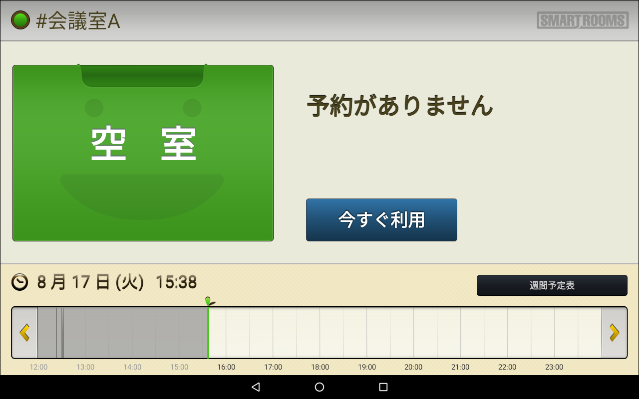 次の予定の開始時刻までの時間が、「今すぐ利用の時間」の最小値を下回ると、「空室」状態から「入室待ち」状態に遷移するため、「入室」が行えるようになります。