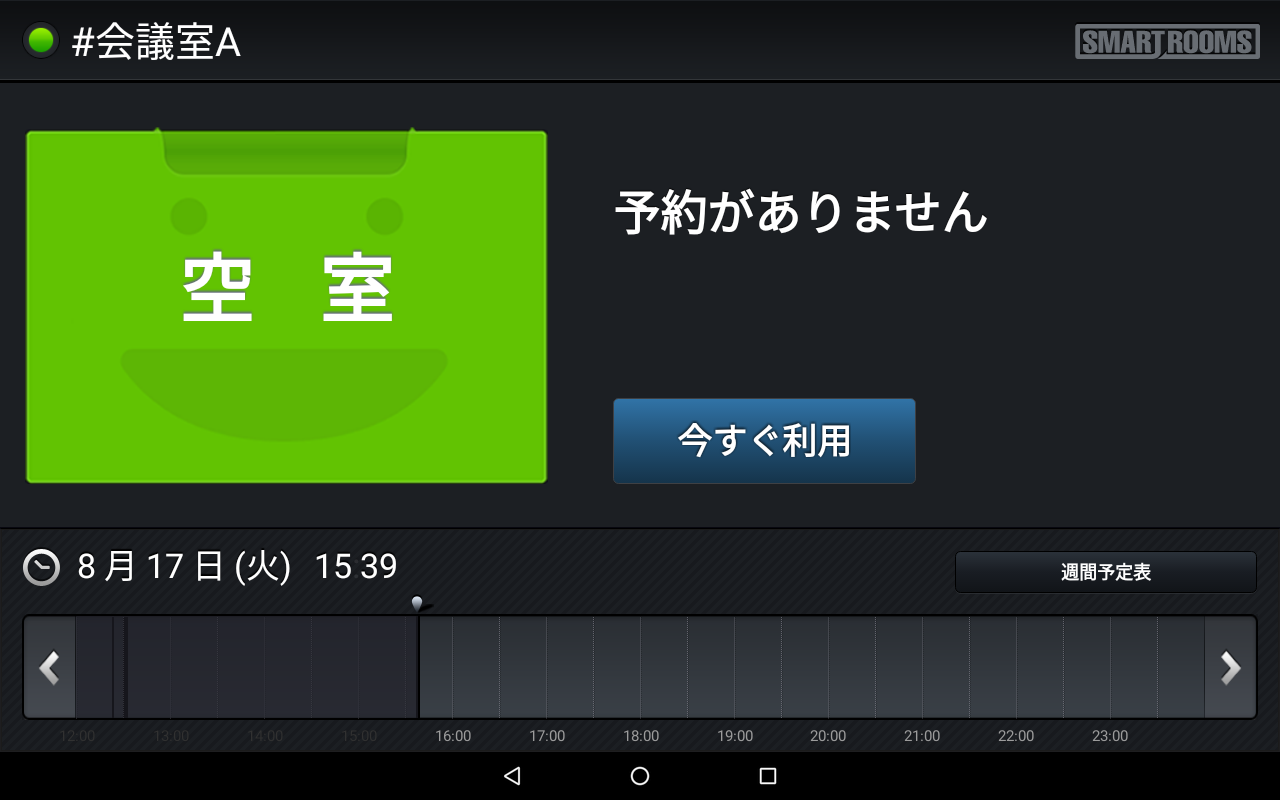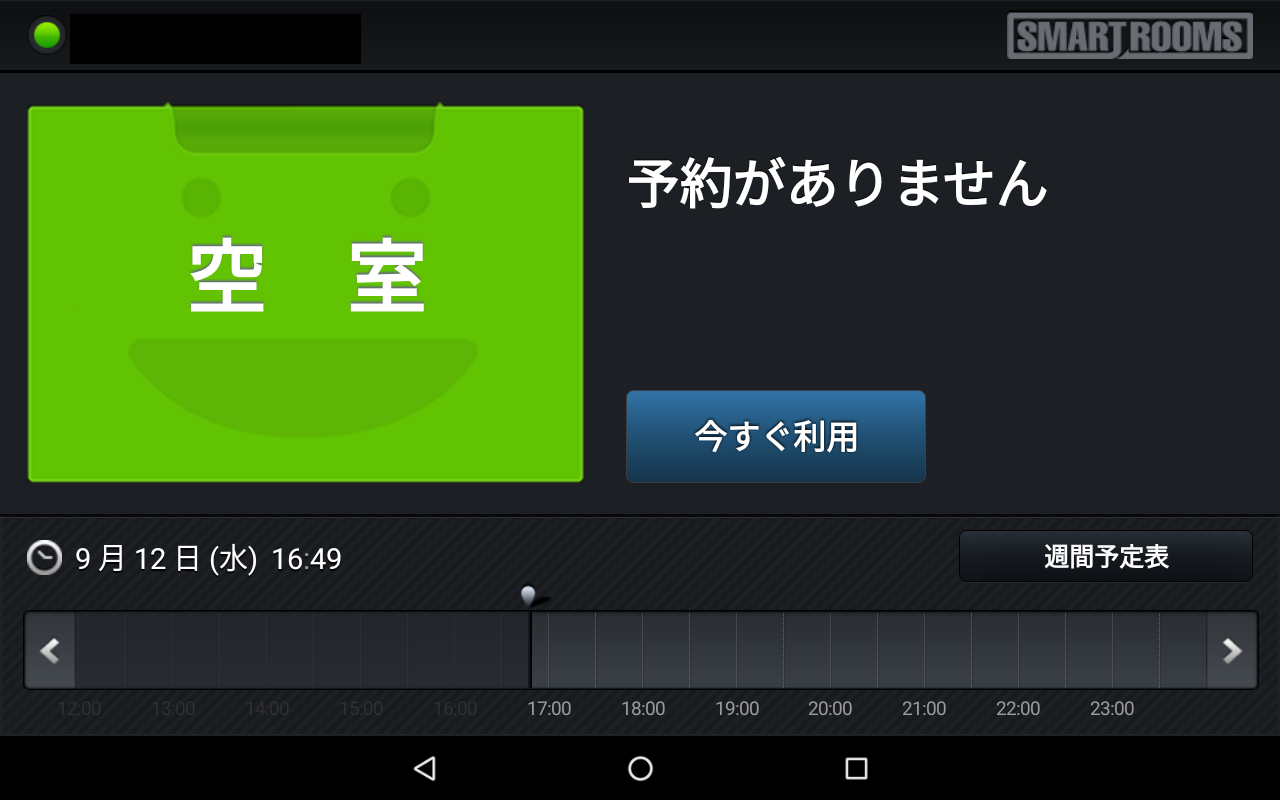 次の予定の開始時刻までの時間が、「今すぐ利用の時間」の最小値を下回ると、「空室」状態から「入室待ち」状態に遷移するため、「入室」が行えるようになります。