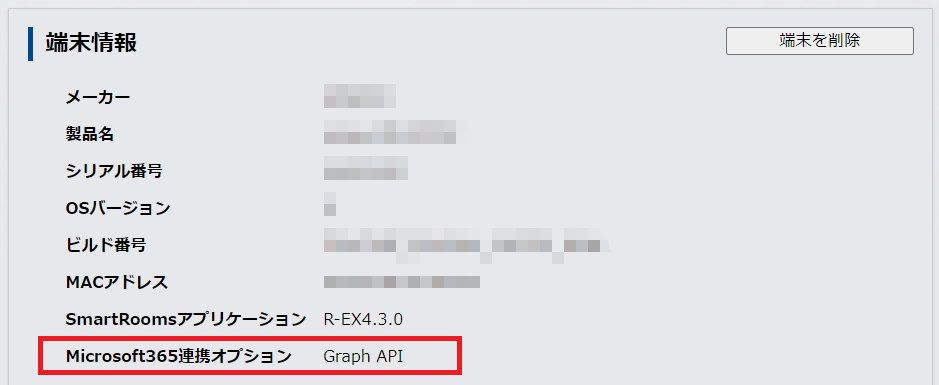 EWSからGraph APIへの切り替え状況を、管理者用ウェブサイトの端末情報画面で確認する方法です。