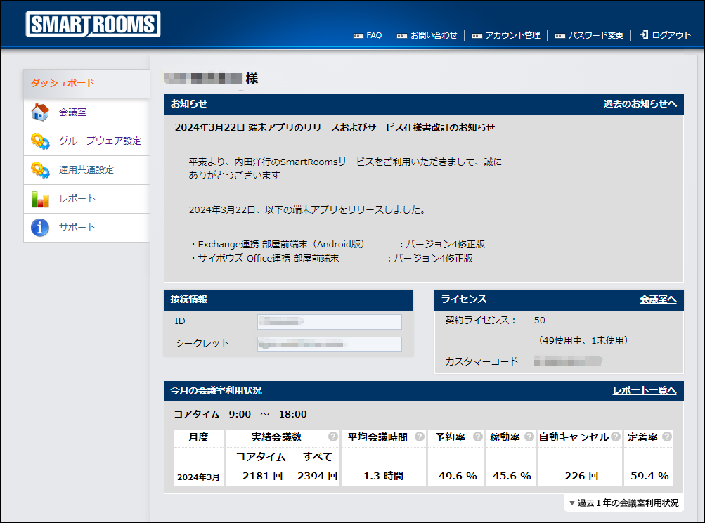管理者用ウェブサイトにログインします。