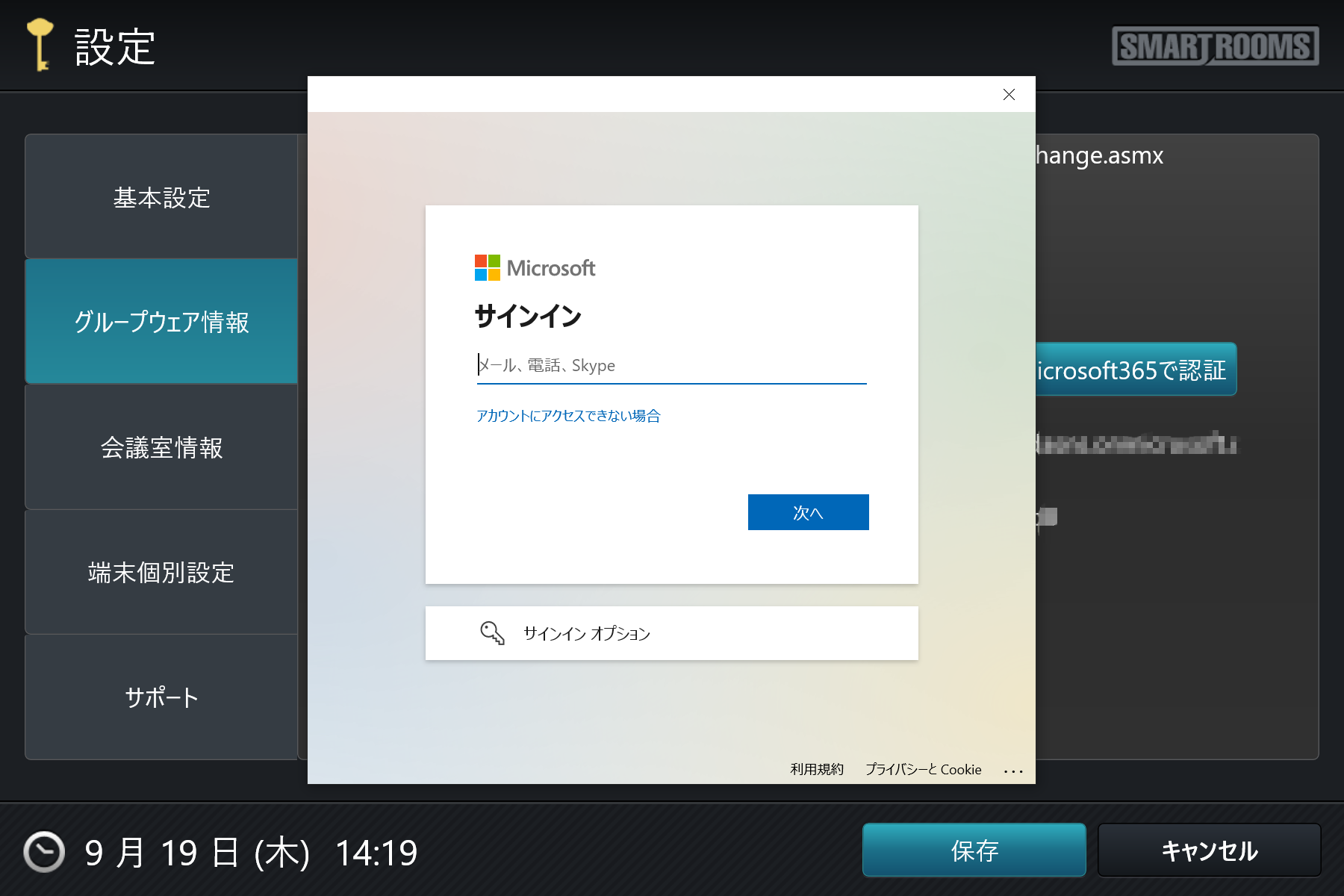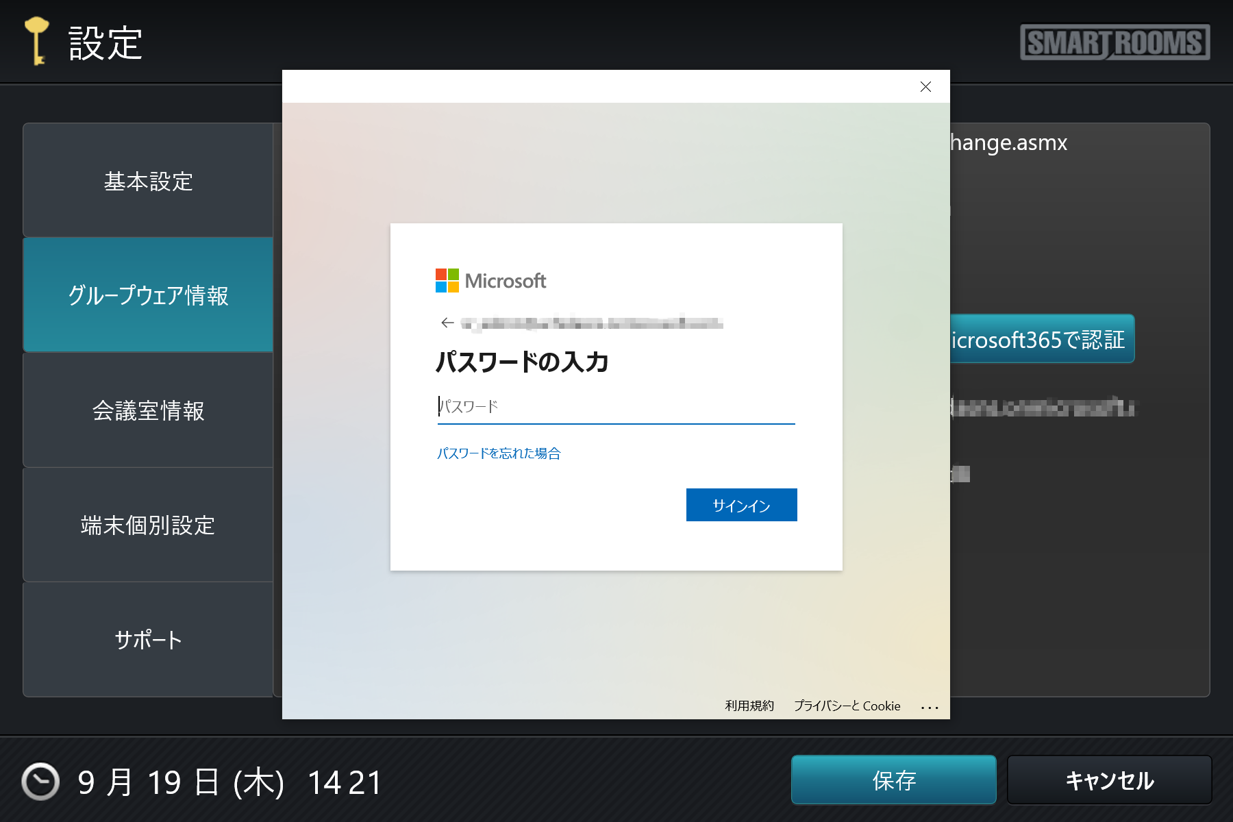 SmartRooms用アカウントのパスワードを入力し、サインインします。