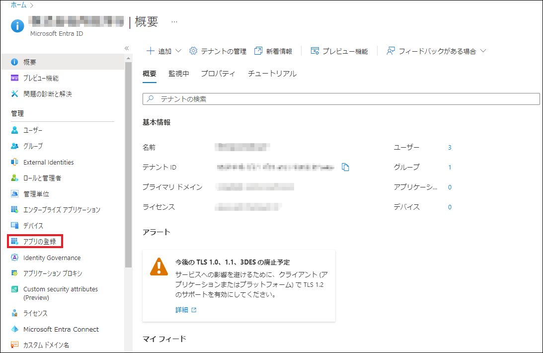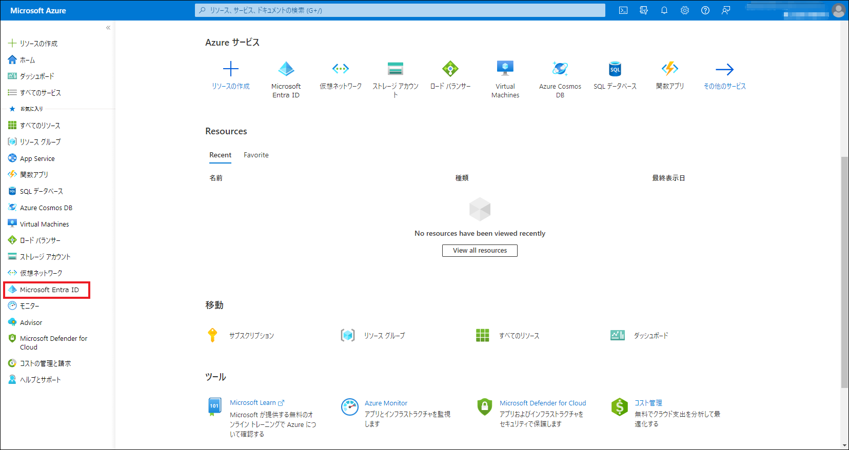 画面左側のメニューを表示させて [Microsoft Entra ID] をクリックします。