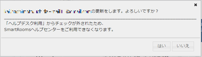 「ヘルプデスク利用」のチェックボックスを変更した場合、ダイアログが表示されます。
