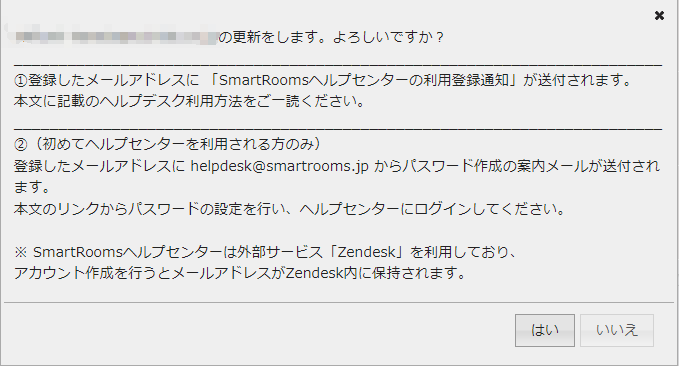 - チェックを付けることにより、SmartRoomsヘルプセンターのアカウントが発行され、ご利用が可能になります。本設定を行った場合にできることは「ヘルプデスク利用者」を参照してください。