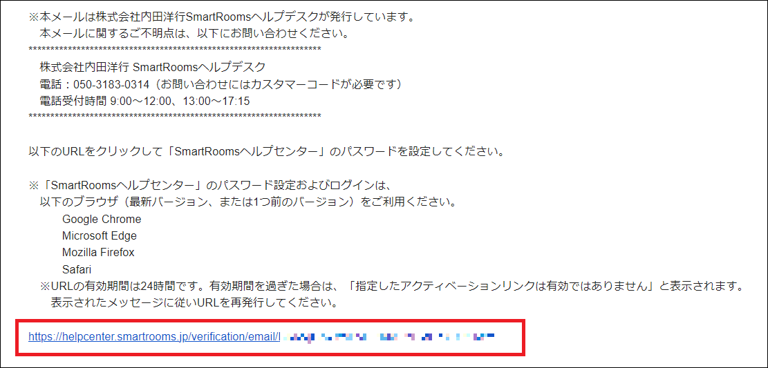 「SmartRoomsヘルプセンターのアカウントをアクティブにしてください」のメールが届いたら、本文のURLをクリックします。