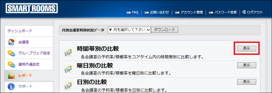 月別の会議室利用状況データのダウンロード方法について説明します。