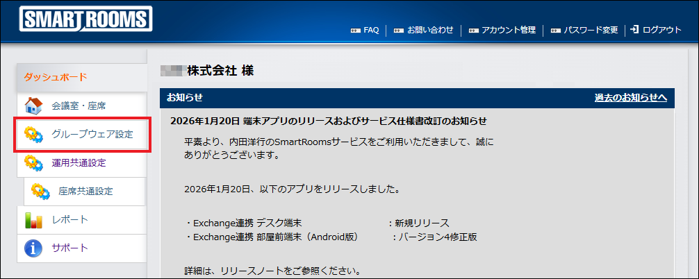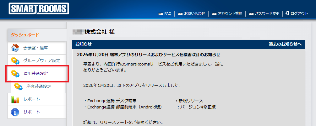 SmartRooms用アカウント名 |