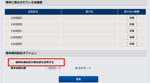端末ごとの会議室への紐づけや表示の設定を行います。