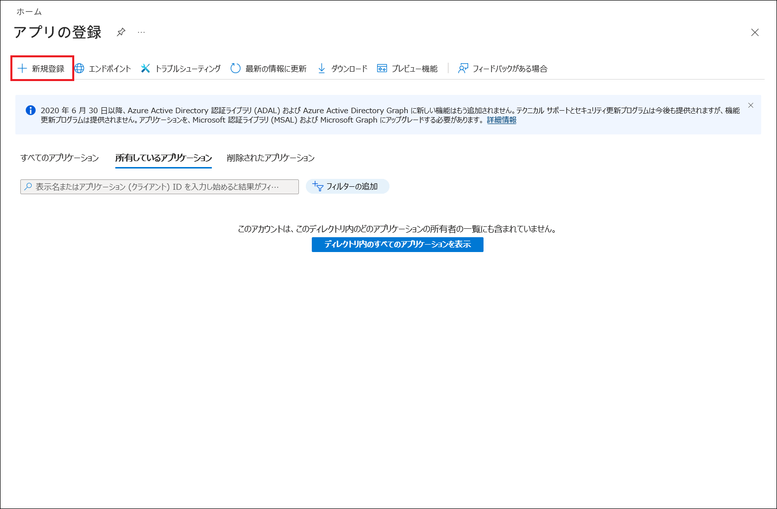Microsoft 365のAPIを利用するために、アプリケーション登録を行います。
