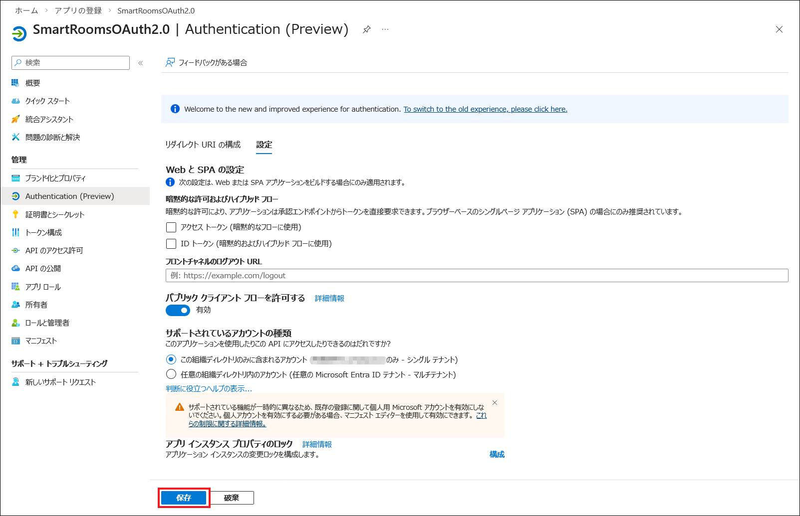 SmartRoomsの「ID/パスワード入力による認証の要求」機能を利用するには、ROPCフロー有効化の設定が必要です。