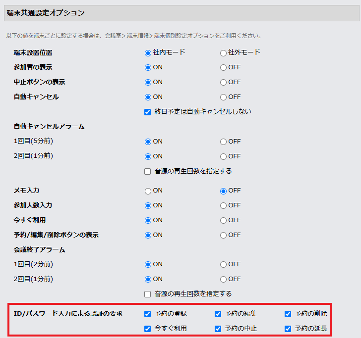 SmartRoomsの「ID/パスワード入力による認証の要求」機能の詳細については、Exchange連携版 管理マニュアルをご参照ください。