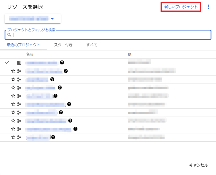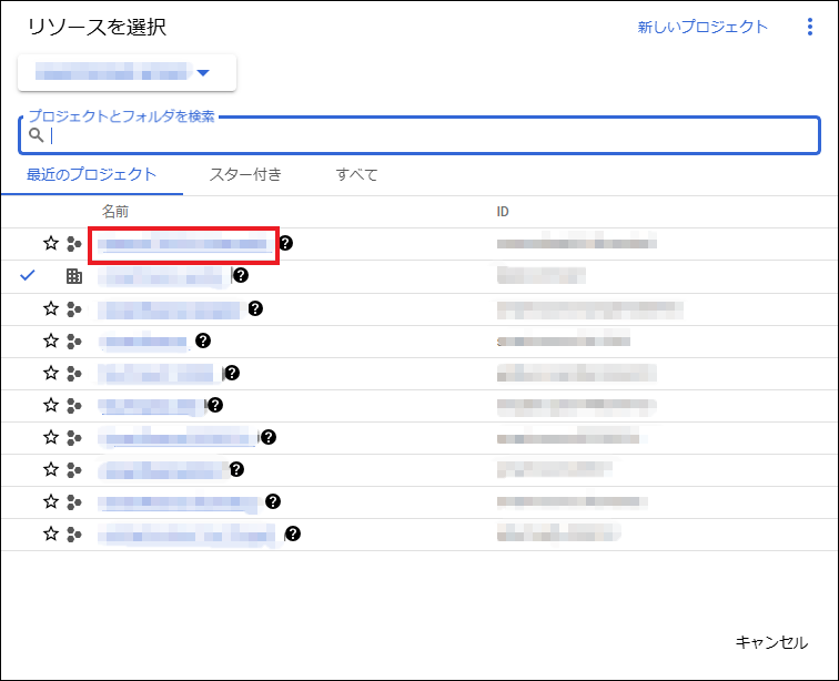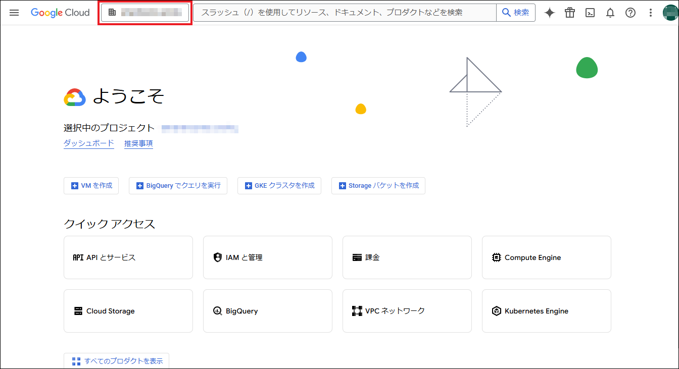 画面左上の[プロジェクトの選択]または[(プロジェクト名)]をクリックします。