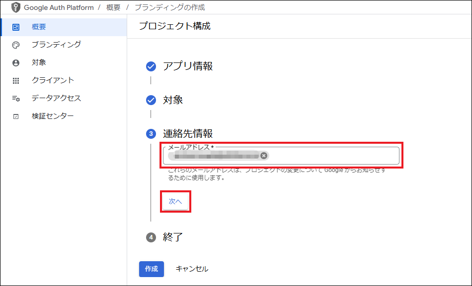 - e). ③の「連絡先情報」のメールアドレスを入力します。