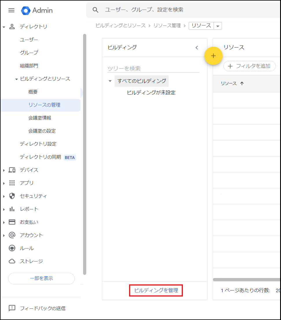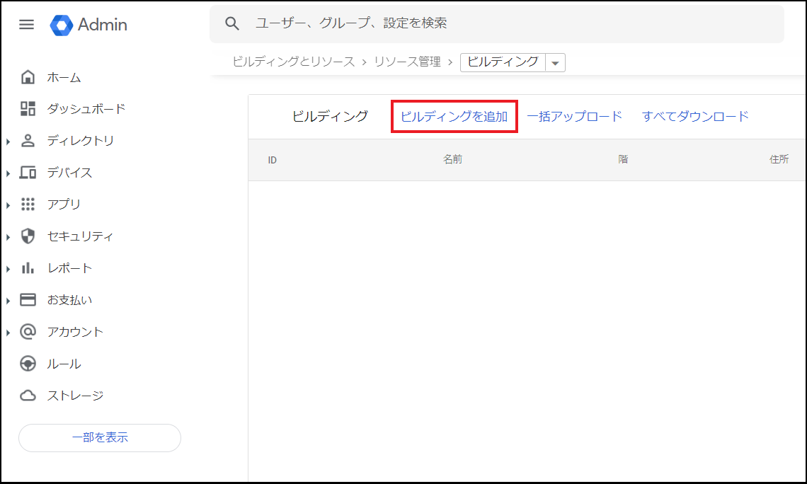 会議室リソースを作成するには、事前にビルディングが作成されている必要があります。