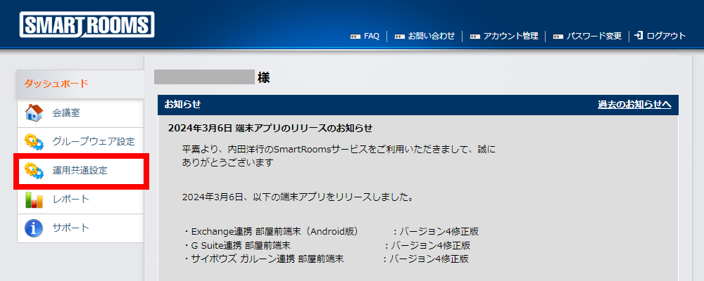 4. SmartRooms管理者用ウェブサイトで行う作業¶
