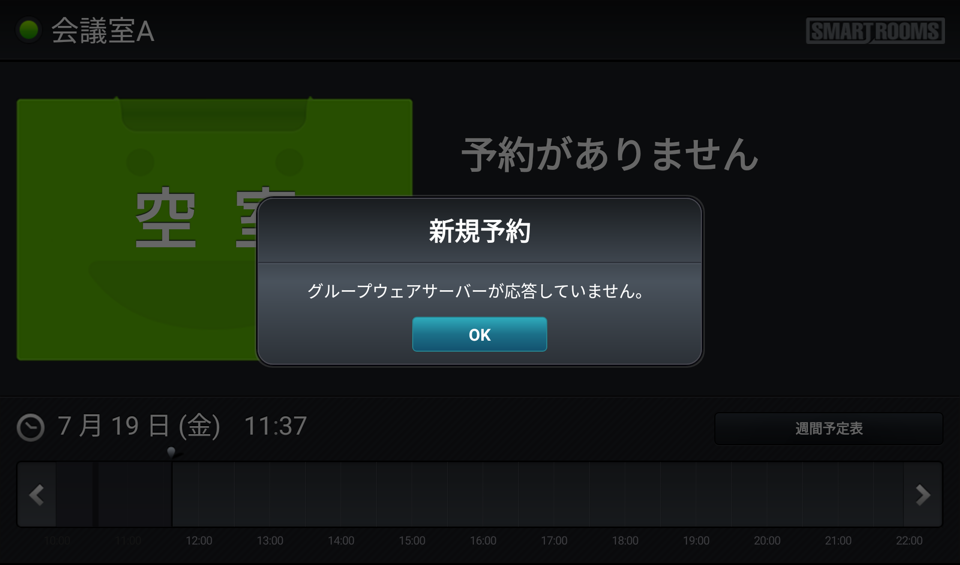 非公開の予定がある時間帯に「今すぐ利用」を行うと、「グループウェアサーバーが応答していません。」と表示されます。