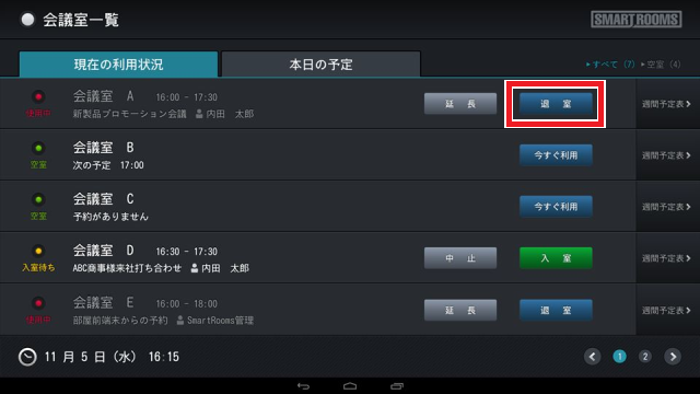 会議室が「空室」の場合、ただちに会議室を利用できます。