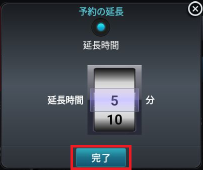 延長する時間を指定し[完了]をタップします。