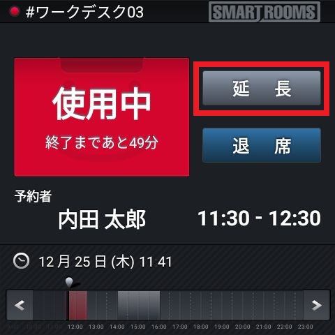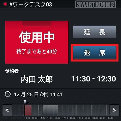 「退席」ボタンをタップしなかった場合、予定終了時刻になると予約は自動的に終了します。