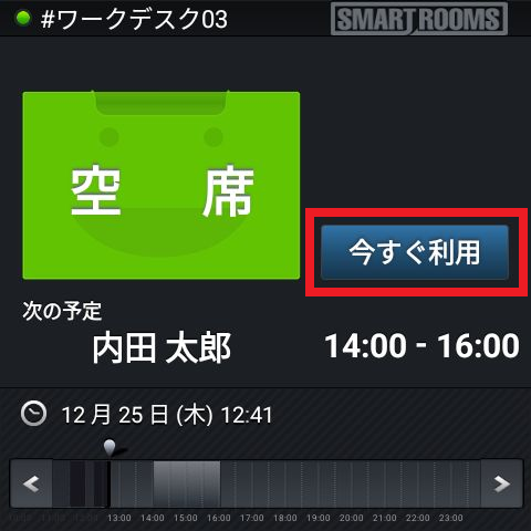メイン画面が「空席」と表示されている際に、その場で座席を予約してすぐに利用開始する場合のフローを説明します。