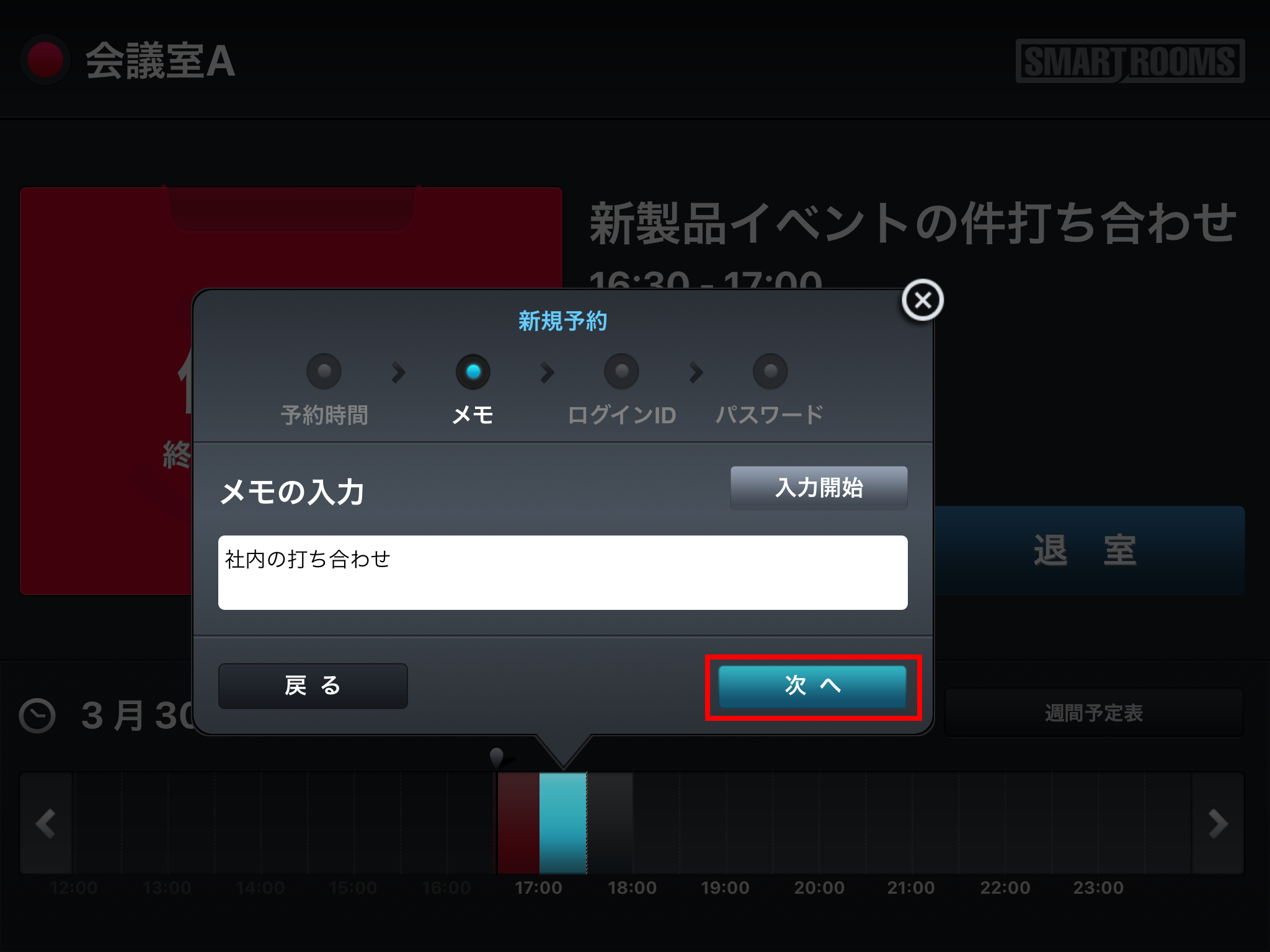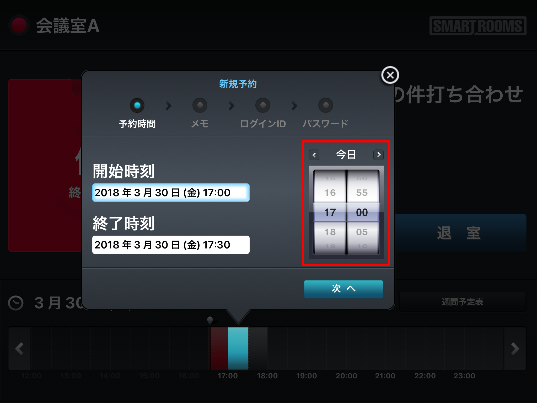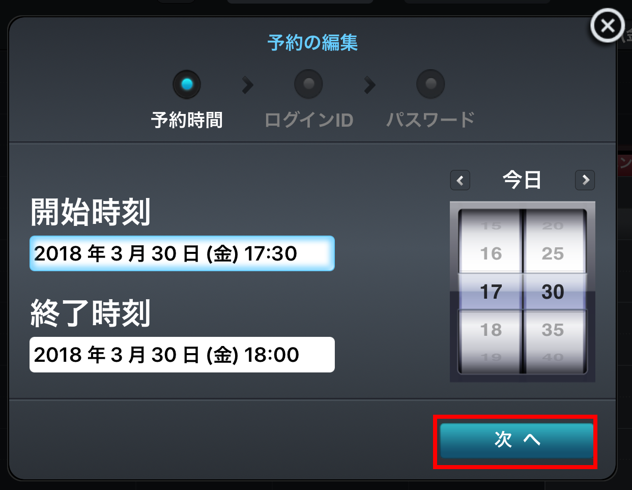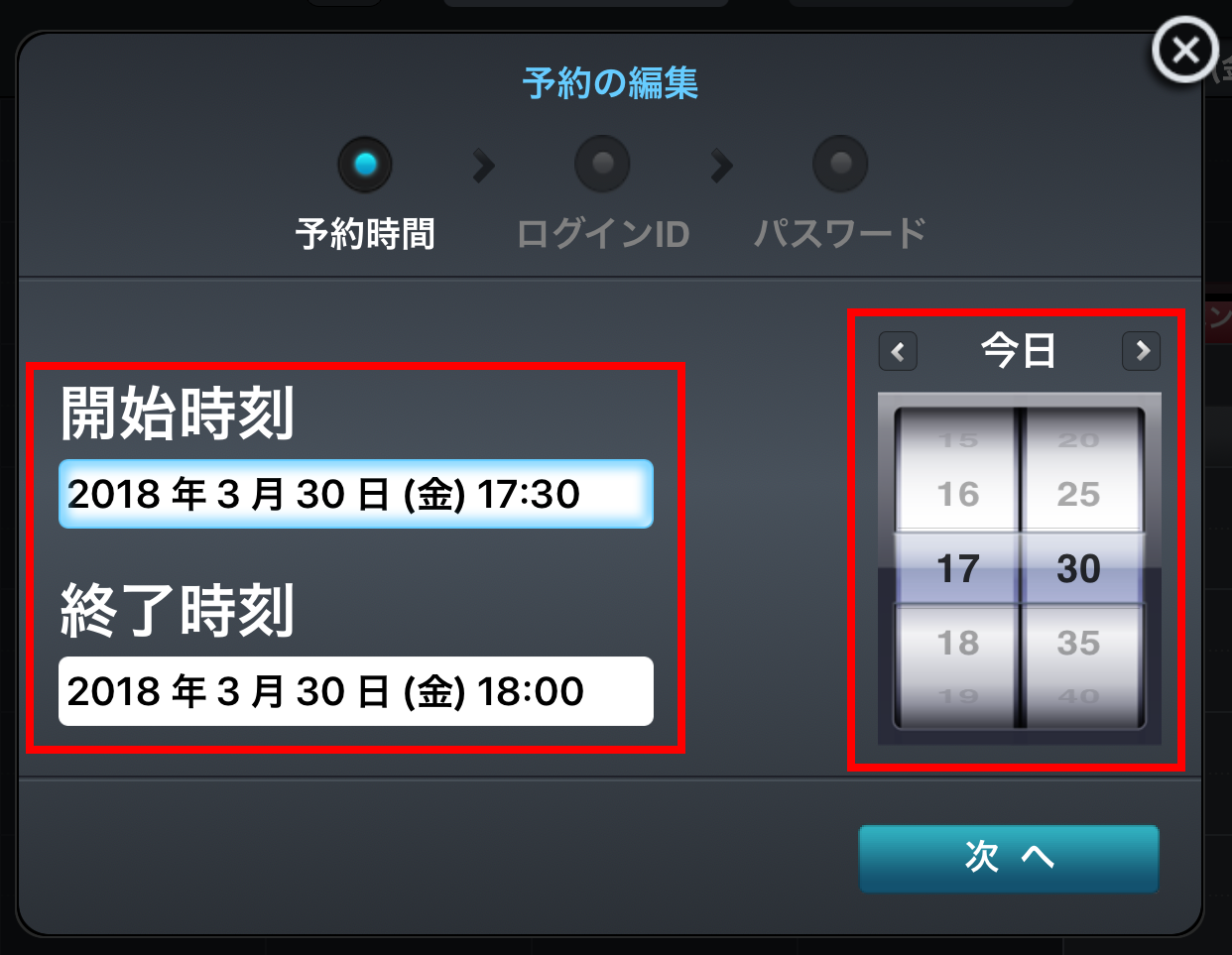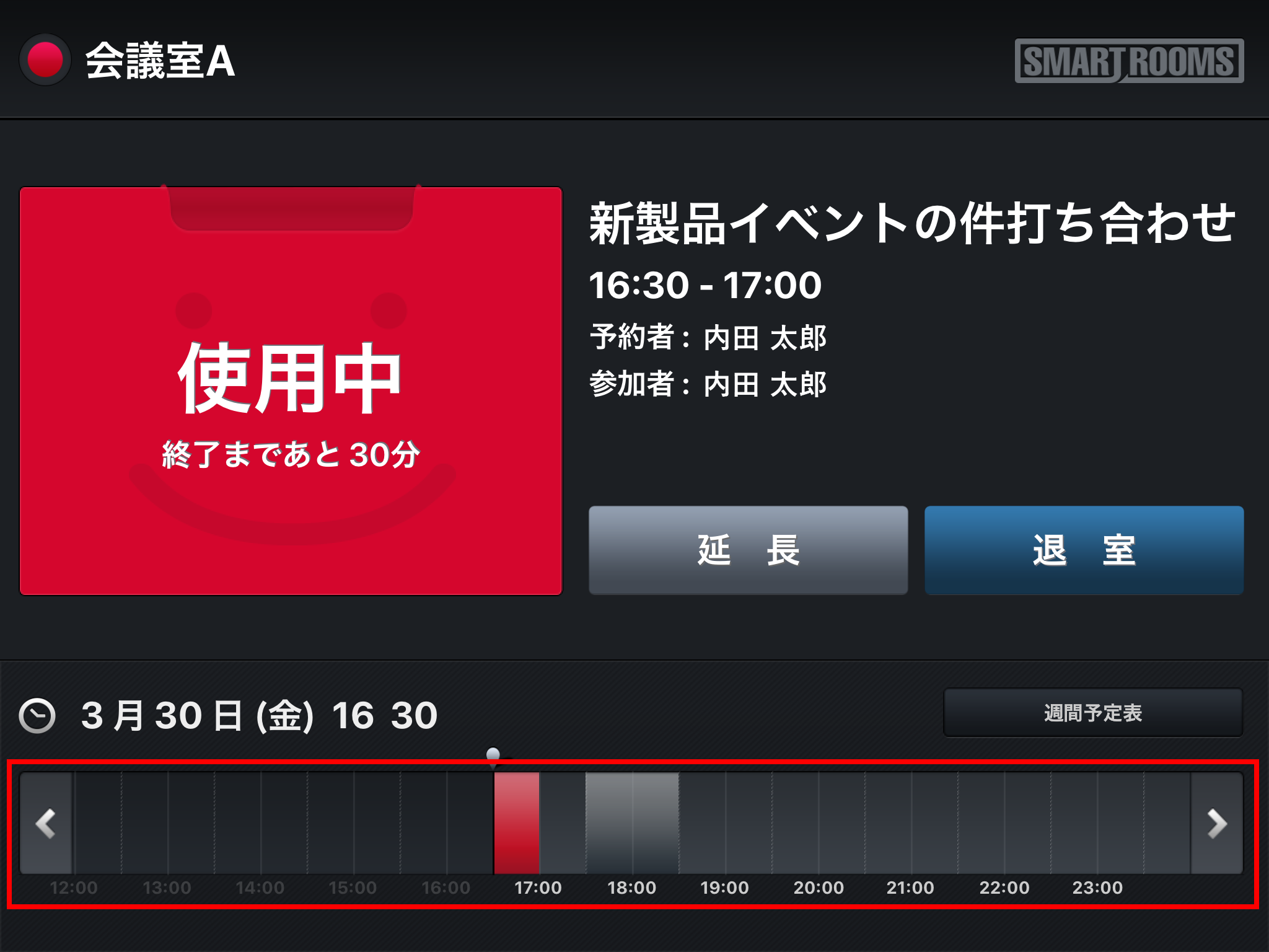 メイン画面のタイムバーまたは週間予定表画面の予定表から編集対象の予約情報をタップします。