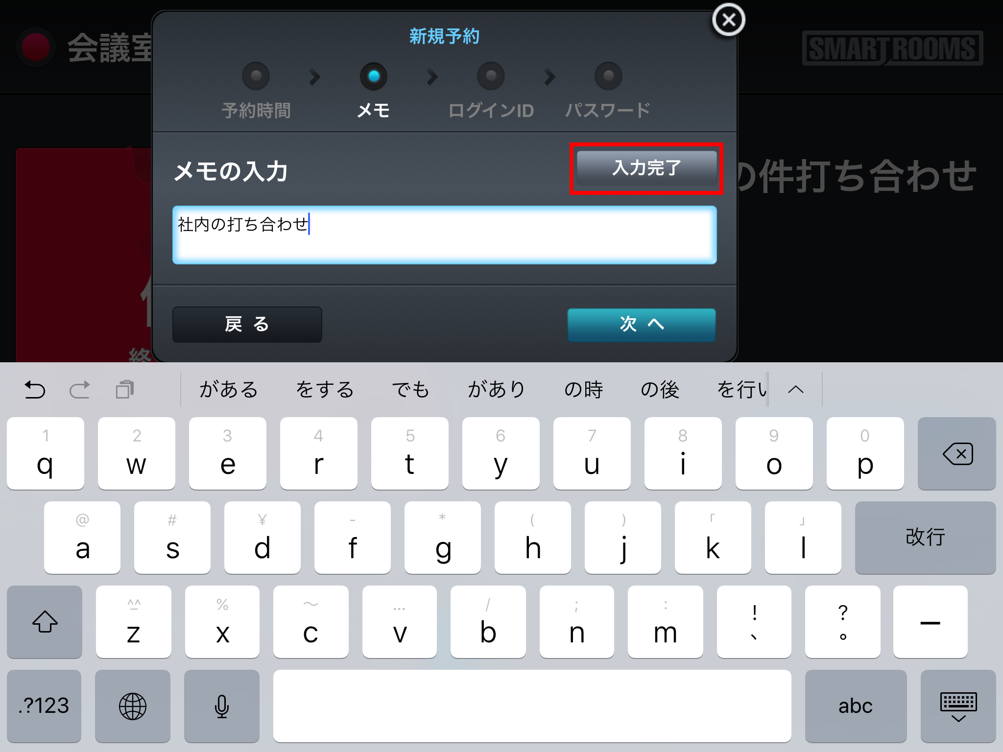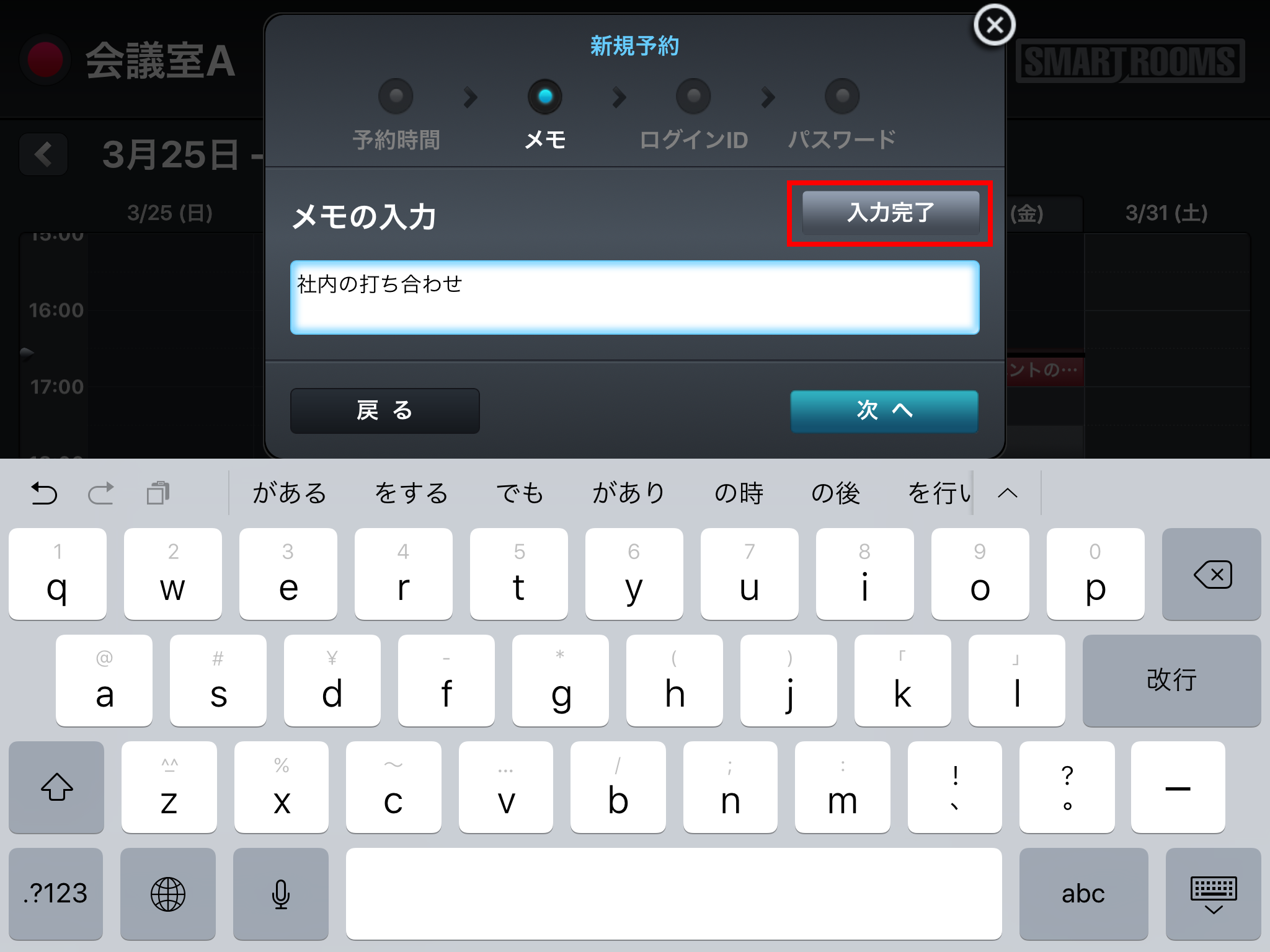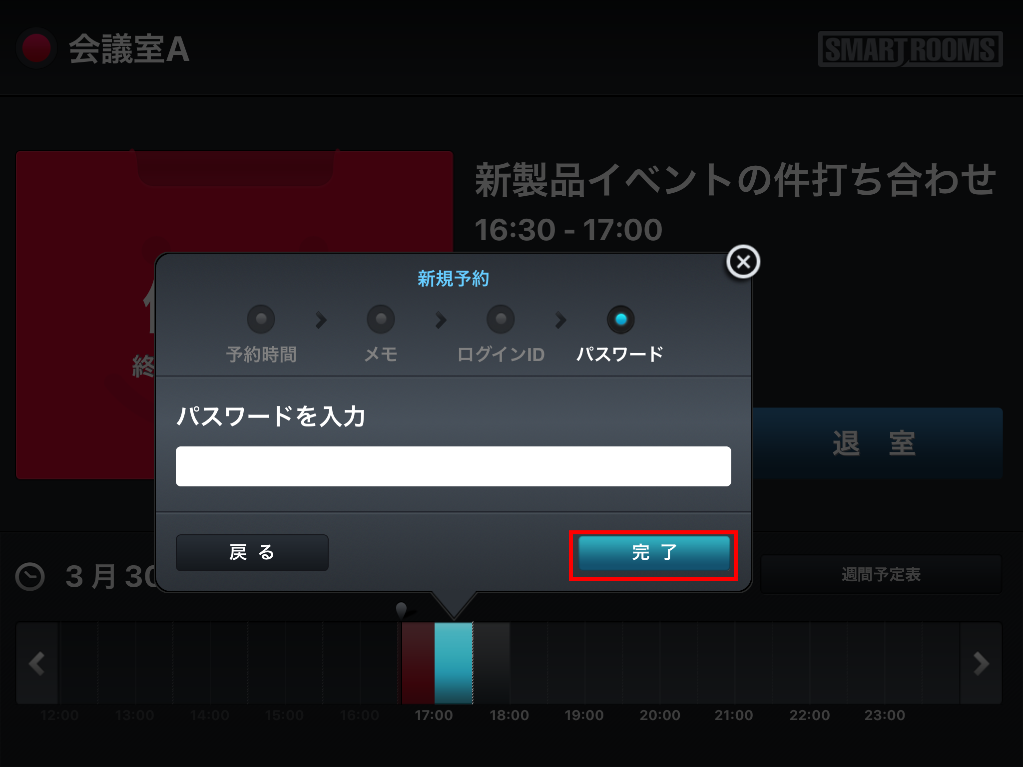 操作する人のExchangeのパスワードを入力し[完了]をタップします。