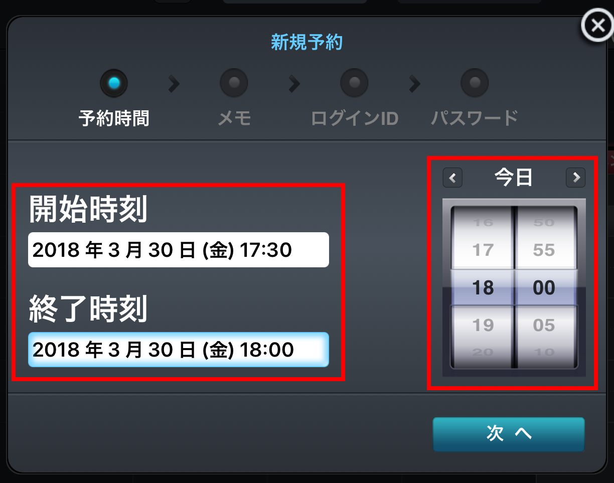 メイン画面で、タイムバーの予定が入っていない箇所をタップします。