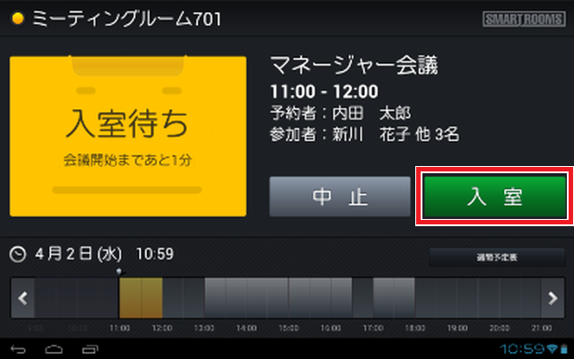 会議室の利用を開始し、入室します。