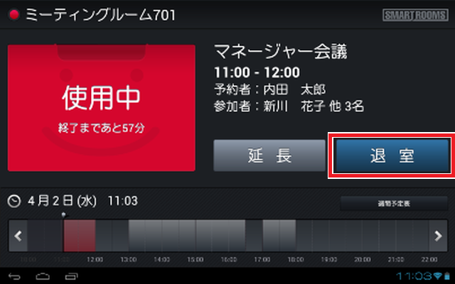 メイン画面が「空室」の場合、ただちに会議室を利用できます。