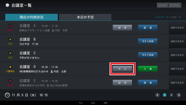 予約情報を削除し、事前に会議室の利用を取り止めます。