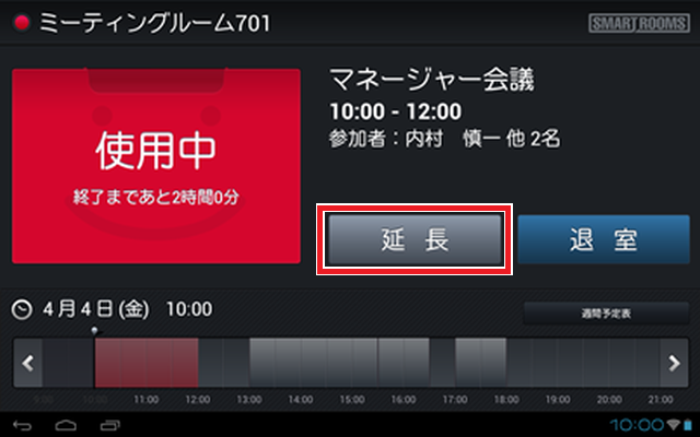 R-GA3.0.14以降では、予定開始時刻後のみ予定の延長ができます。予定開始時刻より前に延長操作をした場合は、延長できない旨のメッセージが表示されます。