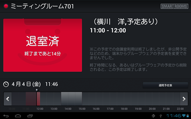 - グループウェアでは対象となる予定の終了時刻が退室した時間に変更されます。