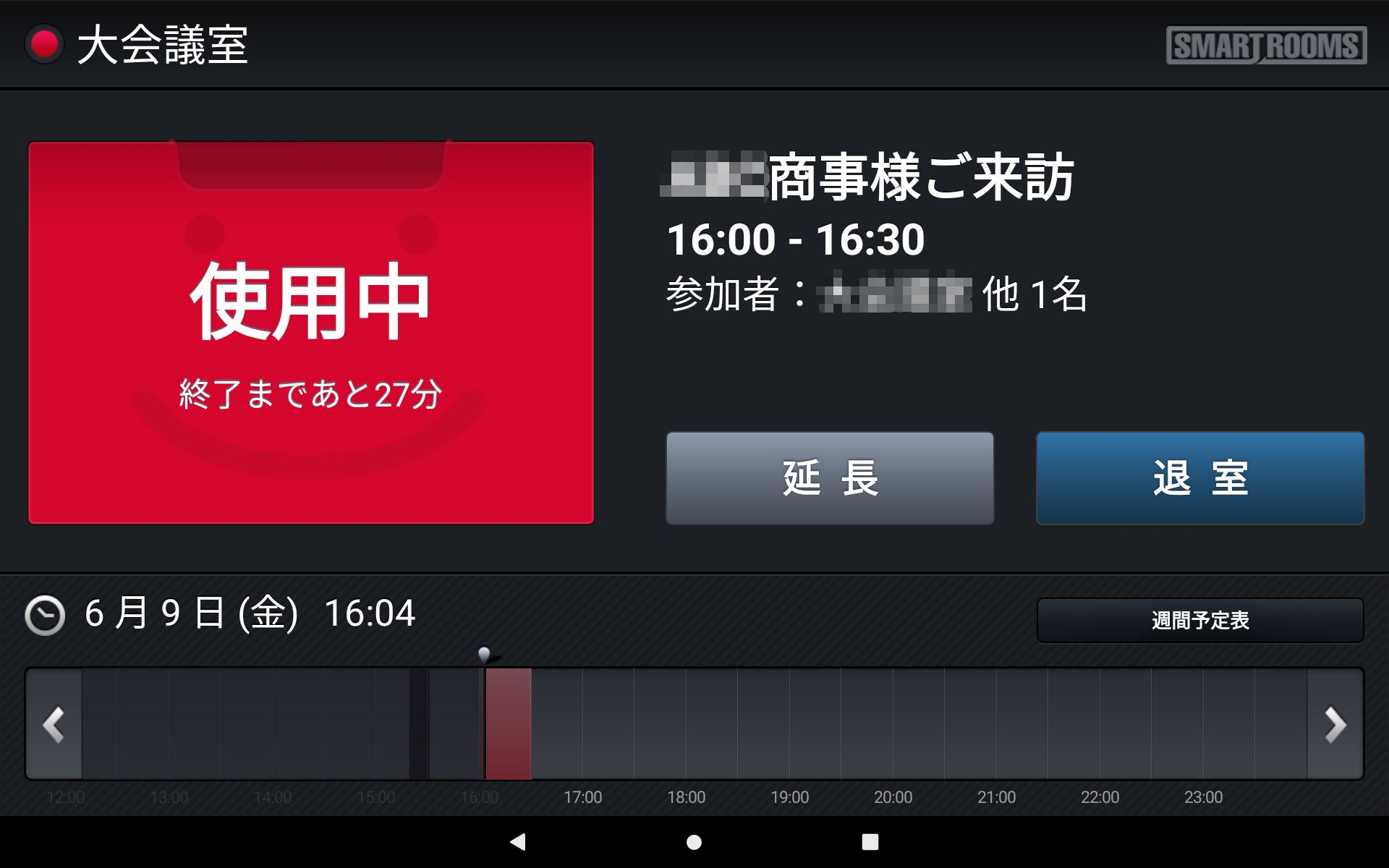 社内モードの場合、グループウェアで予約した会議タイトルがそのまま表示されます。